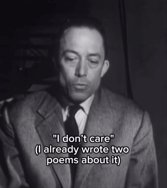 I care too much. And I've also felt that I live in a world and time when we're told not to care at all. At times, I think that not everyone is as passionate and some people just can't relate to my enthusiasm for things. If I like a show or a book I'll want to talk about it for hours, analyze it. Not everyone is into that. It's okay. It doesn't matter.